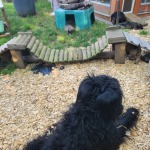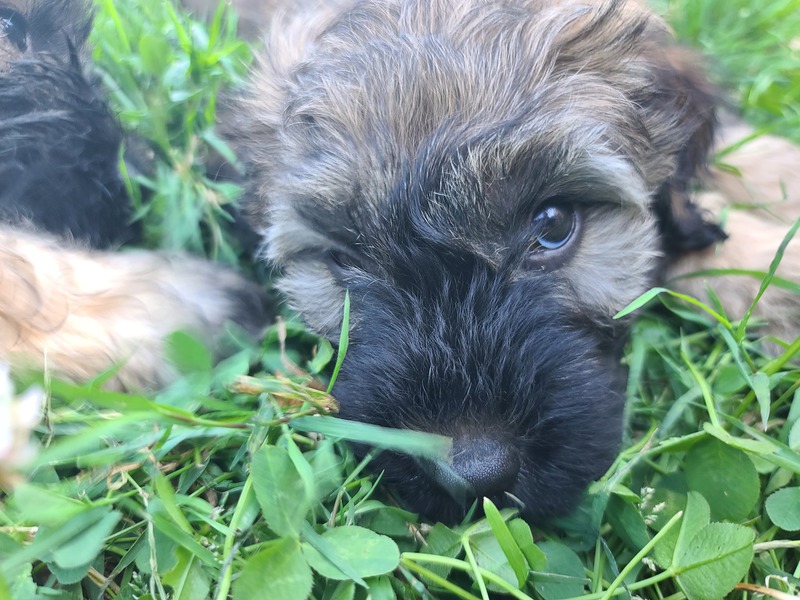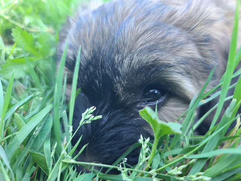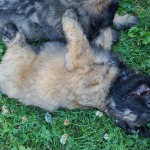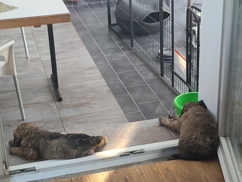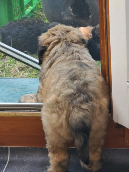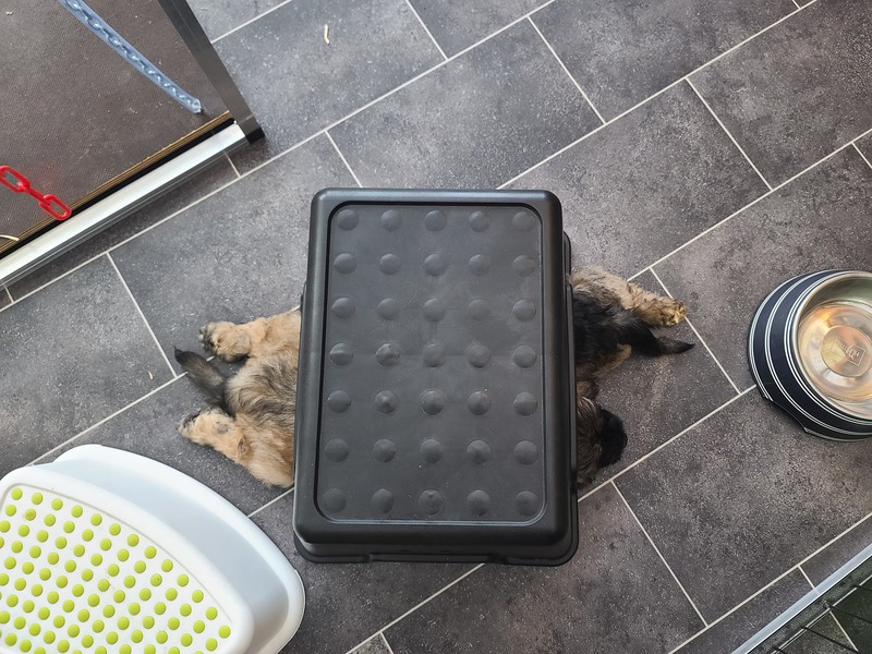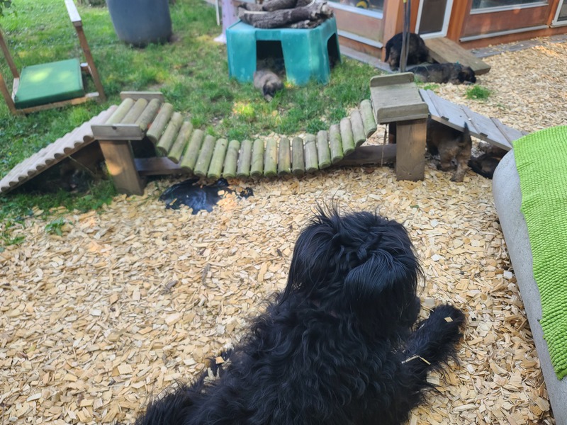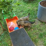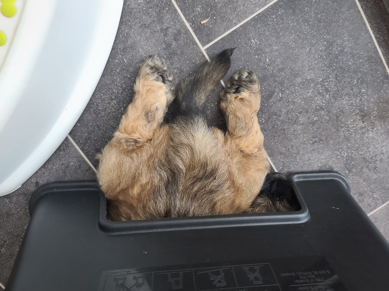 wir erobern den Garten Schritt für Schritt, lernen "Morrowsche Karrottensuppe" kennen, bis auf einen Schlingel scheinen alle schon recht zuverlässig ihr großes Geschäft im Garten zu verrichten ;-), wir bekommen weiterhin Welpenkuschelbesuch in Maaßen von groß und klein, trainieren den Super-RR ;-)
