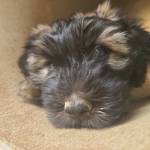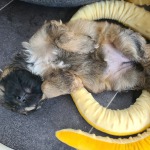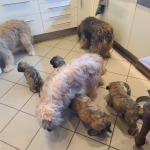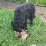 Nach der etwas kräftezehrenden Geburt des ersten Welpen, legte Hermine erst einmal eine schöpferische Pause ein, bevor es dann gut eindreiviertel Stunde später weiterging mit dem ersten Rüden. Dann weiter hopplahopp...schon eine Viertelstunde später Welpe Nr. 3 , das zweite Mädel und dann die nächsten beiden Welpen im Abstand von einer guten und knappen halben Stunde - zwei weitere Rüden. Eine weitere Stunde später dann Welpe Nr.6, das dritte Mädel - für uns 6Richtige :-)! Die Zusatzzahl ließ dann nochmal gut eineinhalb Stunden auf sich warten und war nicht wirklich vorhergesehen ;-) Rüde Nr. 4. Wir sind sehr froh und glücklich wie toll Hermine das gemacht hat! Unsere Super MiniMaus.